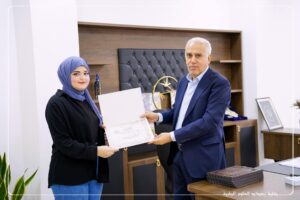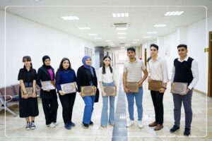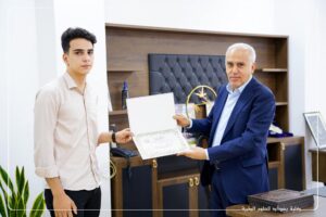 نظراً لأهمية النشاطات الطلابية اللاصفية ولما لها من الاثر والدور الكبير في إقامة بيئة جامعية متكاملة علمياً وإجتماعياً وفكرياً و تشجيع الطلاب على المشاركة الفعالة وتوثيق العلاقات الاجتماعية فيما بينهم ومع اساتذتهم واتاحة الفرصة لهم للتعبير عن ابداعاتهم واختيار الانشطة التي تتلائم مع ميولهم واهتماماتهم ، منح الاستاذ الدكتور احمد عباس حسين – عميد الكلية المحترم هذا اليوم السبت المصادف ١٨-٥-٢٠٢٤ الشهادات التقديرية الى الطلبة الاعزاء من المرحلة الاولى لقسمي الصيدلة والتمريض المشاركين في معرض الرسم (( صناع الجمال)) الذي اقيم في كليتنا بالتعاون مع وحدة النشاطات الطلابية نهاية الشهر الماضي و الذي تضمن جملة من اللوحات الفنية والرسومات اليدوية التي جسدت ابداعات ومواهب طلبتنا الاعزاء